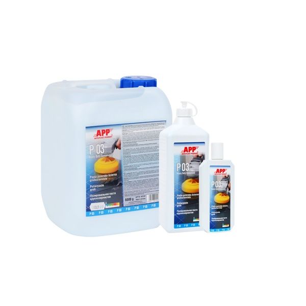 Leštiaca pasta P03 - hrubá ( Heavy Duty Compound) bez silikonu. Vhodná kombinácia brúsnych častíc a emulzie zaručuje maximálny brúsny účinok.