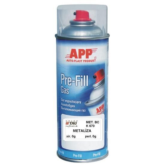 Autolak namiešaný podľa kódu farby automobilu, pre jednoduchú a rýchlu opravu poškodených časti karosérie, dvojvrstvová metalíza alebo perleťová metalíza, cena spreju je od 15,00 € s DPH + príplatok za perleťové (0,03€/g) a xirallikové (0,06 €/g) pigmenty.