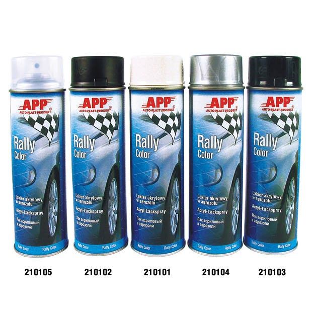 APP Rally Color, rýchlo schnúci acrylový sprej s vysokou priľnavosťou, krycou schopnosťou a odolnosťou na poškodenie.