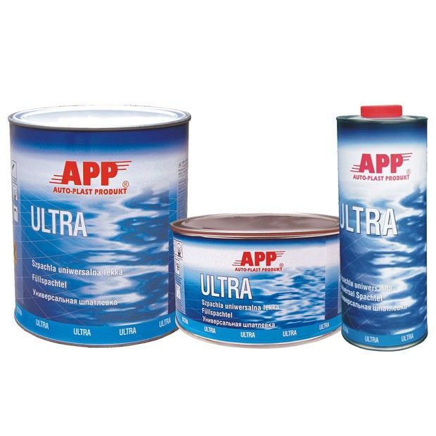 Tmel Univerzálny APP Ultra, odľahčený dvojzložkový polyesterový plniaci tmel s mikroplnidlom. Po vytvrdnutí je odolný proti kyselinám, lúhom, rozpúšťadlám a slanej vode s nízkou koncentráciou. APP tmel Ultra sa vyznačuje vysokou flexibilitou, má zvýšenú mechanickúodolnosť. Veľmi jednoducho sa nanášo a brúsi